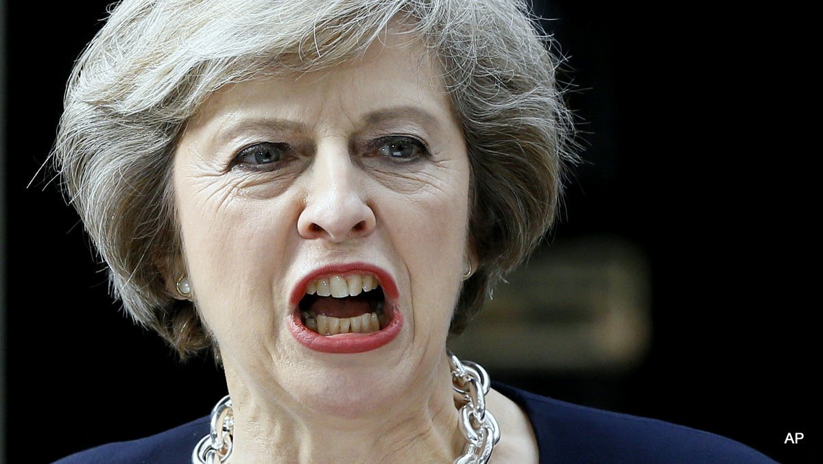 Также он подобрал фотографию Терезы Мэй со зловещим выражением лица: «Тереза Мэй обещает беспощадную борьбу с ГРУ».